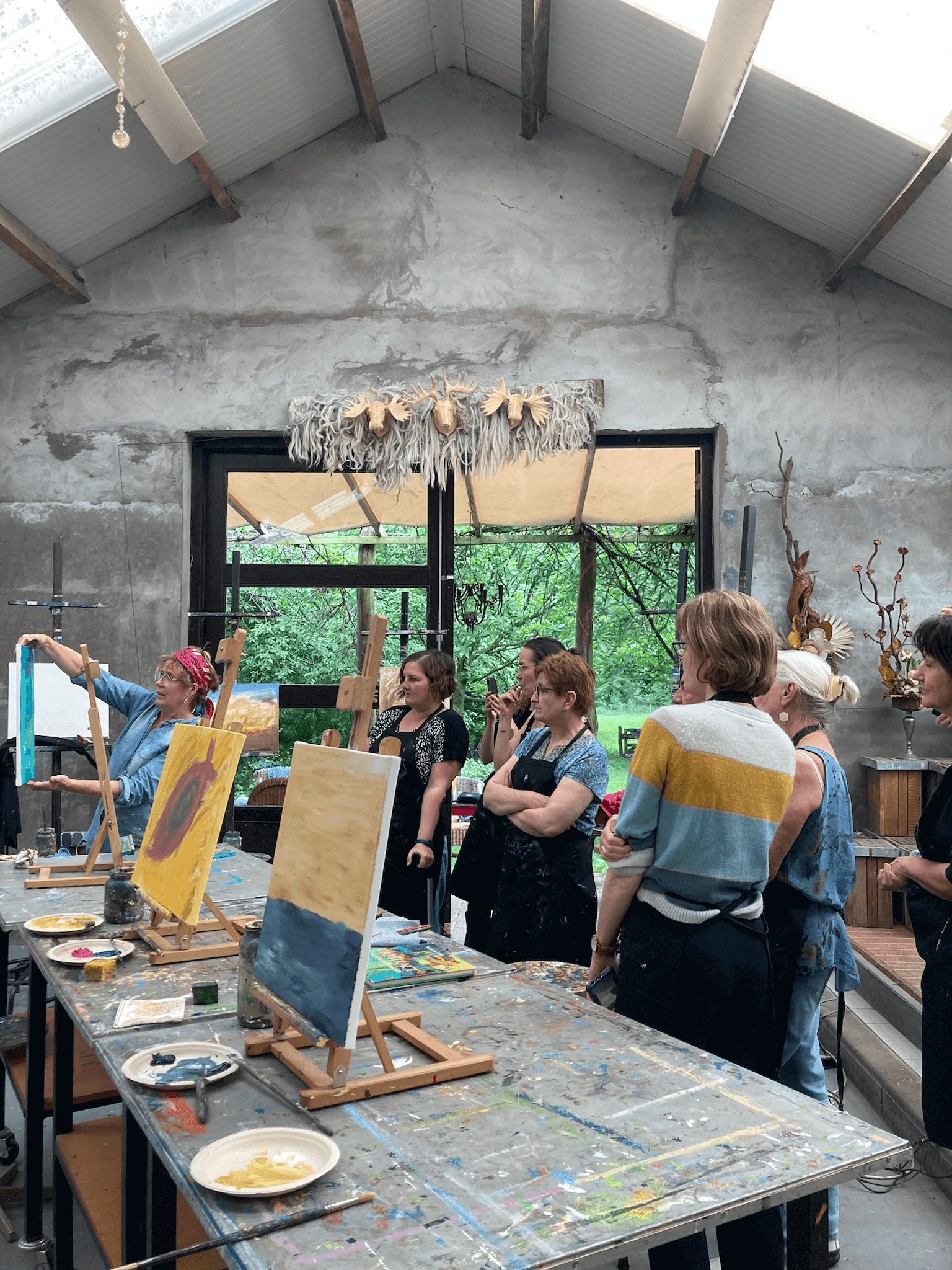 Atelier De Stal is gelegen in natuurgebied de Lemmehof in Sevenum. We wandelen doorheen het natuurgebied met hoogstam boomgaarden, kikkerpoelen, beekjes en Mergelland schapen om te belanden in het schildersatelier, voor een heerlijke workshop intuïtief schilderen. Hoe minder schilderervaring, hoe beter ;-)