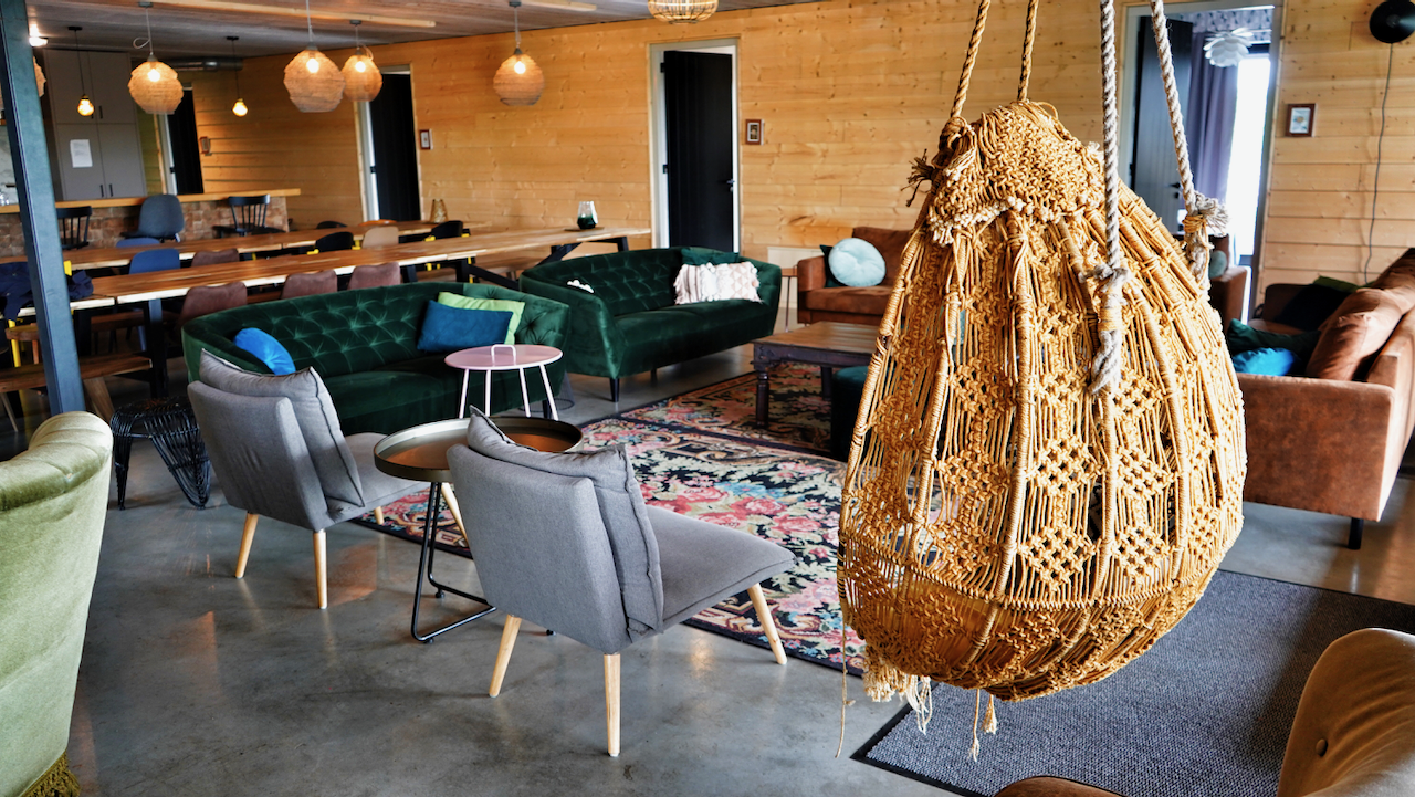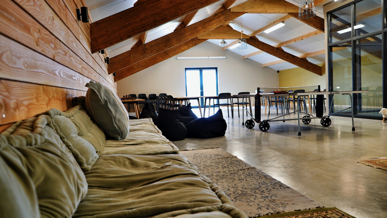 Wil je even tot rust komen, dan kan dat in de salon, die je volop plek biedt om je terug te trekken met een boek, of net om je groepsgenoten te ontmoeten, gezellig bij de houtkachel wanneer het 's avond wat frisser is.